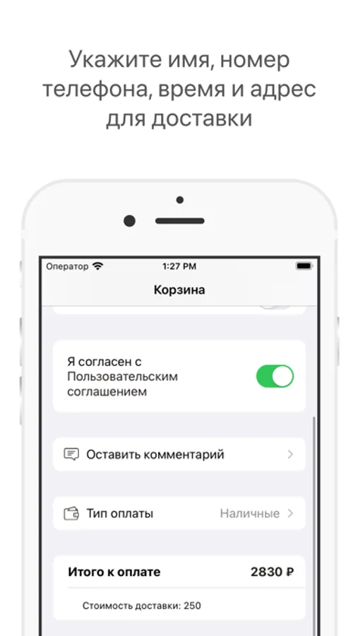 На экране заказа добавьте свою контактную информацию для первого заказа: Имя, Номер телефона и адрес электронной почты, чтобы получать уведомления об оплате.