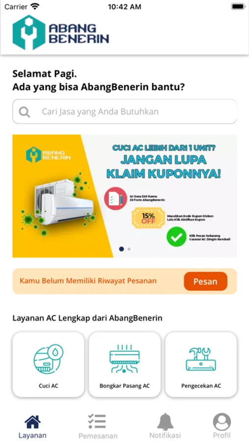 Di layanan Abang Benerin kamu bisa : Cuci AC, Bongkar Pasang AC dan Perbaikan AC.