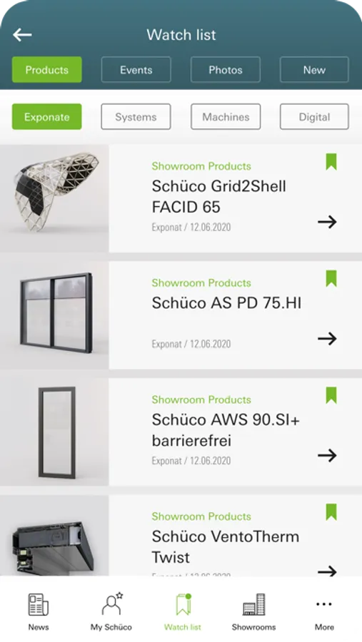 And even when you're not on Campus, you can still use the app to receive information on upcoming events and make use of other features. In your personal My Schüco area, you can create a Favourites list for storing helpful information on products, machines and exhibits.