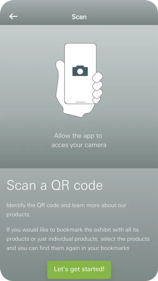 Product scanner: Scan codes on our exhibits using the scan function in the app to receive detailed information. You can also save products to your personal Favourites list in the app.