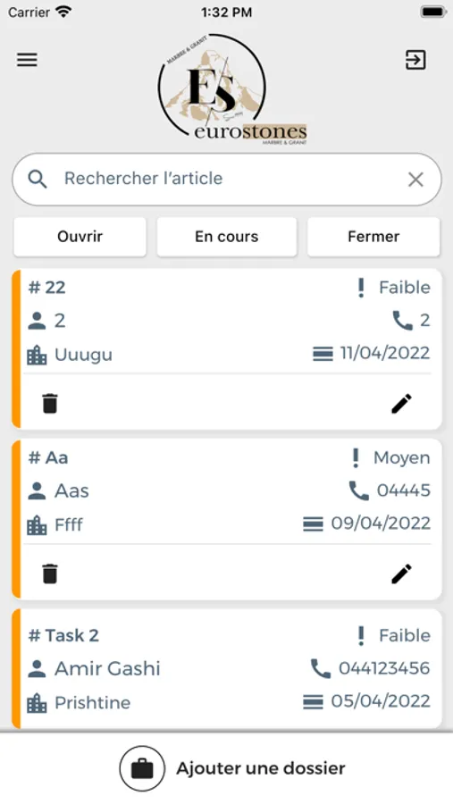 Eurostones is an application that will be used by the company Eurostones and its customers. Our company will manage the tasks that will be initiated by customers, who will have access to add see their tasks and every detail of the work, including comments, work photos, etc.