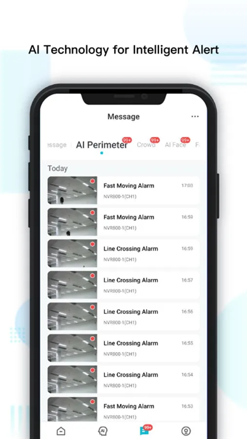 -- Get instant alerts for AI perimeter, crowd situation, face detection, abnormal equipment, etc.