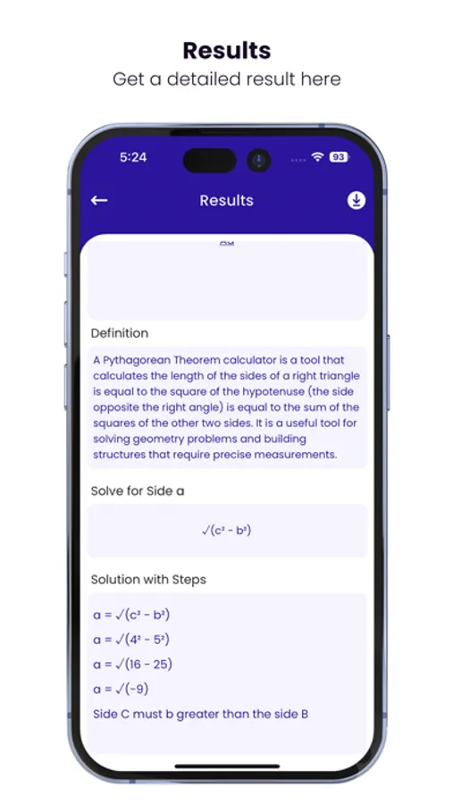 Give a try this Algebra and Geometry calculator app right now to get a detailed solution to any equation. Just insert values of any 2 sides in this hypotenuse calculator. Get quick results with steps by using this Pythagorean theorem calculator