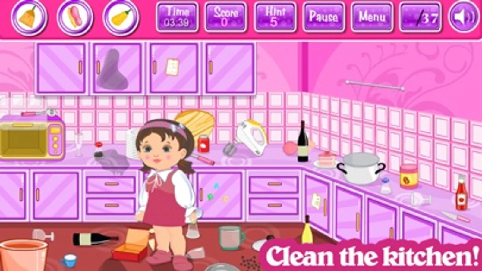 Hello girls. Do you like cleaning games? This type of games are very interesting because it challenge your attention and your mind. Here in this new girl game you must help Nancy clean his house because it is a totally mess. There are 3 important rooms, living, bedroom and kitchen you should clean as fast as you can because the time is short. Do you accept the challenge? Prove that you are smart and complete each level before the time ends. Your mission is to arrange all the objects you find around the room at their places, clean the floor and use brush to clean the dirty furniture.