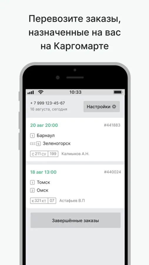 Перед вами бесплатное приложение для водителей, чьи логисты берут свои заказы на Каргомарте. Здесь вы сможете: