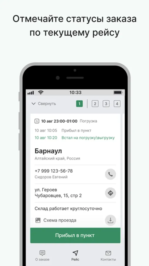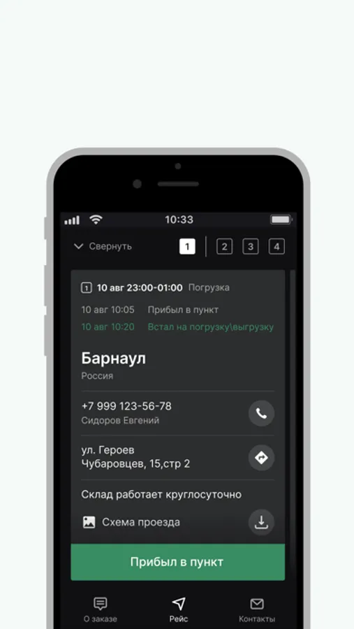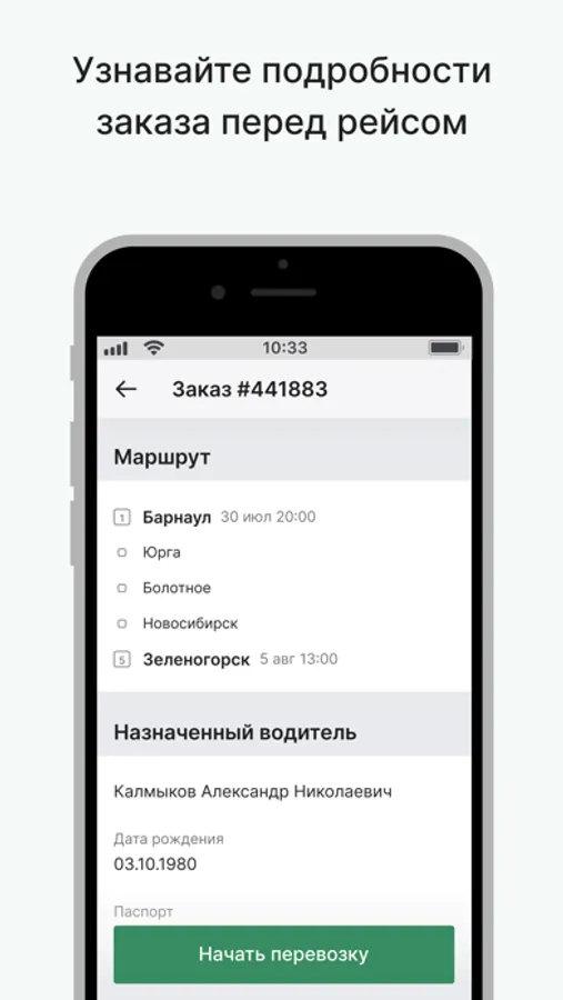 узнать о всех деталях заказа перед тем, как начать перевозку: маршрут, время погрузки и разгрузки, контакты и другую важную информацию;