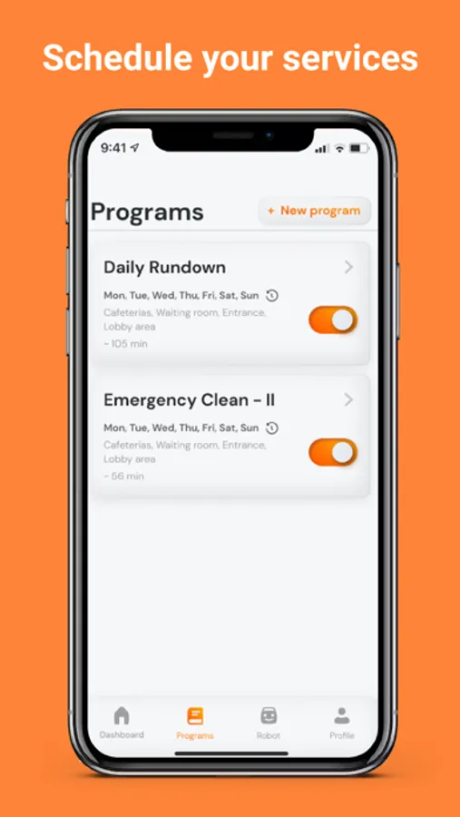 Easy program-scheduling setup complete with a calendar view, days of the week, and start time.