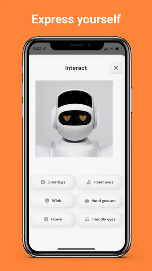 Interaction feature that enables the robot’s different expressions like greet, wink, frown and displays heart and friendly eyes, moves its hand with a gesture.