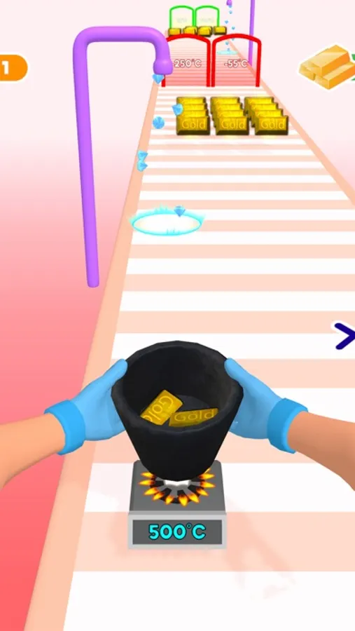 Collect gold and gems and pass them through the doors. Reach the high temperature to turn your gold into jewelry!