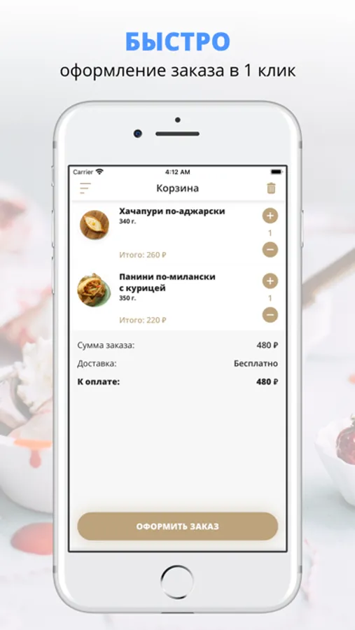 Скачивайте наше приложение, оформляйте заказ и наслаждайтесь любимой едой, где бы Вы ни были! Приятного аппетита!