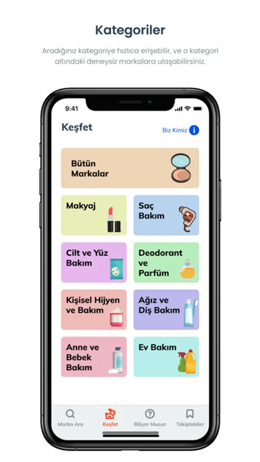 Bu uygulama sayesinde deneysiz olan markalar hakkında bilgi alıp, ürünlerini görebilirsiniz.