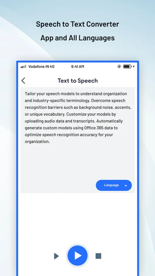Text To Speech : Just write or paste your text and press speech button to convert it into audio file.