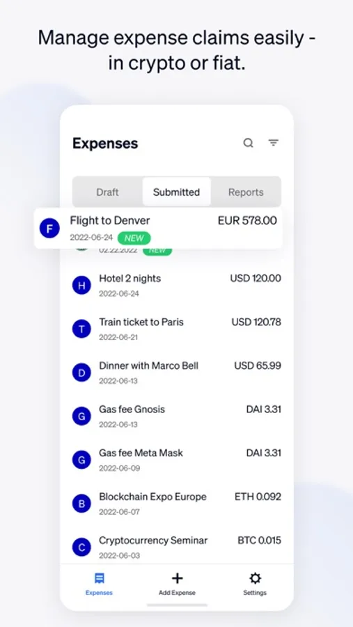 - Submit all your expense claims to be reimbursed in FIAT or CRYPTO,