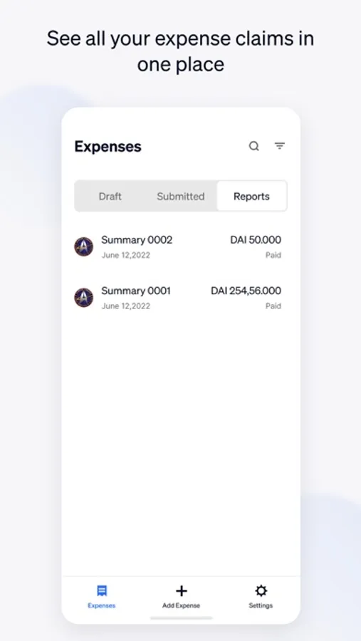 - See all your expense claims history in one place.
