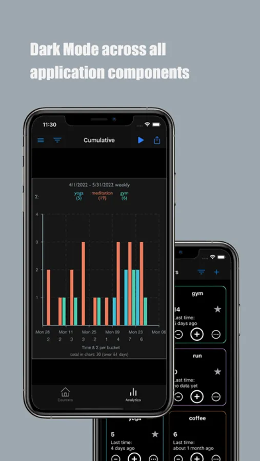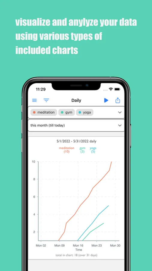 It will be great for counting things like: your workouts, cups of coffee, glasses of water, meditation sittings, journaling sessions, poops of your newborn or a pet, cigarettes smoked, beers drunk, get-togethers with your friends, dates, packs of chips or tables of chocolate you ate, sexual intercourses, instagram posts, blog entries, times you have a hangover, menstruation days, waterpolo games, etc.