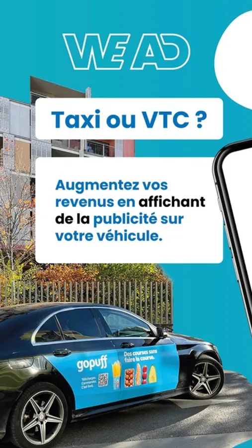 WE AD est une régie spécialiste de l'affichage publicitaire sur véhicule qui vous propose des revenus complémentaires sans changer votre quotidien :