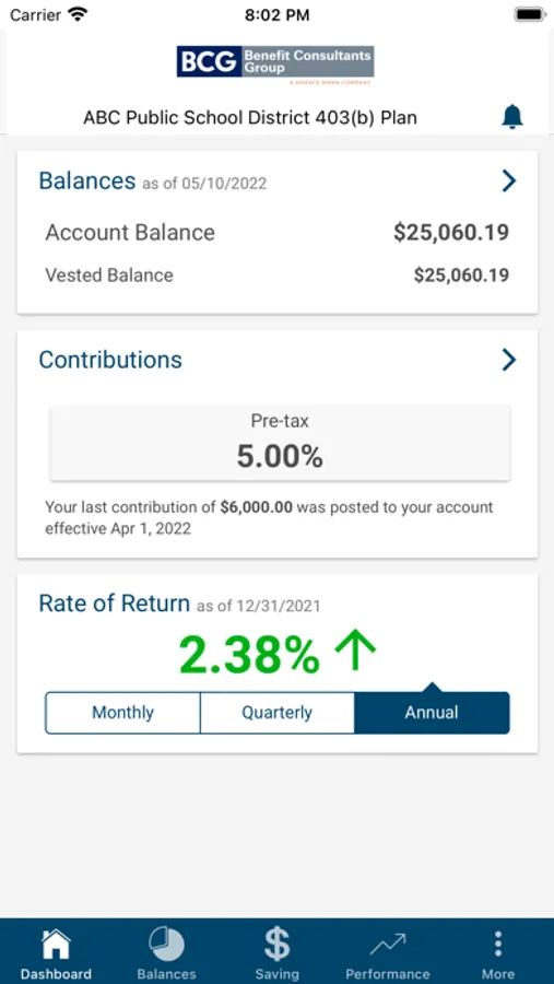 Participants in retirement plans serviced by Benefit Consultants Group use this app to access their account information anytime, anywhere on their mobile device.