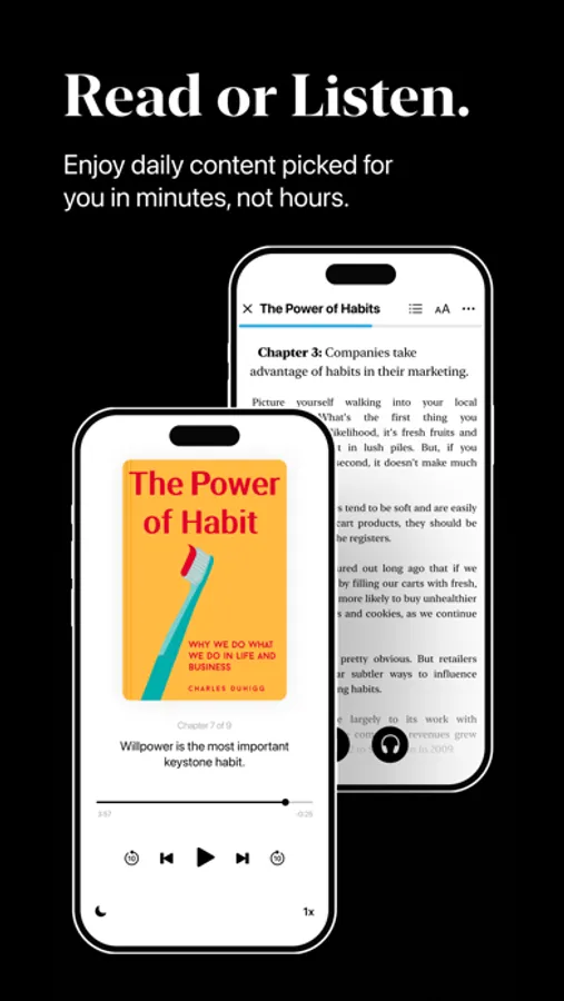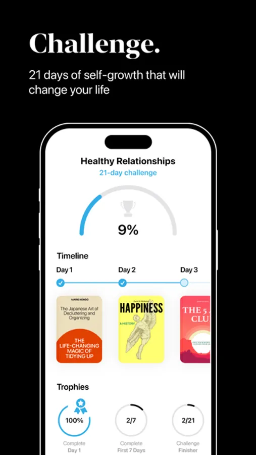 We built Wiser with tools for you to customize your experience and learning. You can read summaries, highlight texts, change font sizes and color themes, share quotes, bookmark titles, set yourself self-learning challenges and daily goals, and build self-improvement habits into your daily routine.