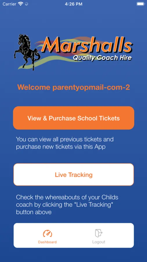 Marshalls Coaches – Parent App. Allowing Marshalls Coaches parents to manage their child's tickets and live tracking.
