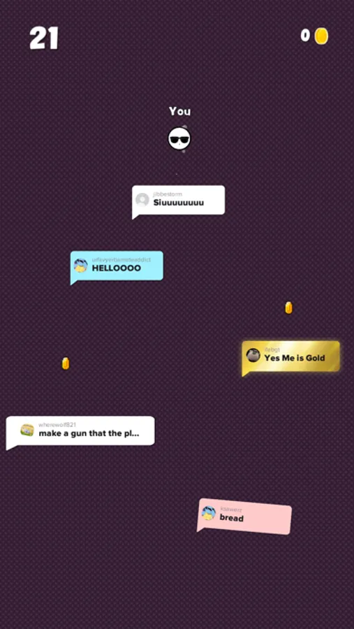 The Gaem is an endless experience that entices the player to land and read each comment. Use each side of the screen to control the ball and aim for the high score. The world slowly moves vertically, so you've gotta keep moving fast or you'll be eliminated.