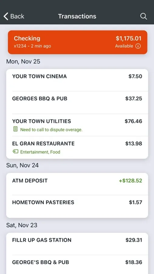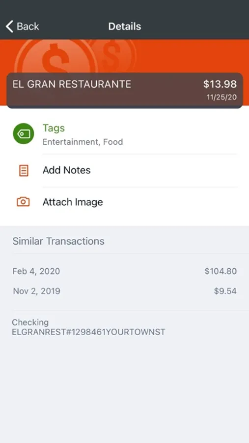 - Keep your transactions organized by allowing you to add tags, notes and photos of receipts and checks.