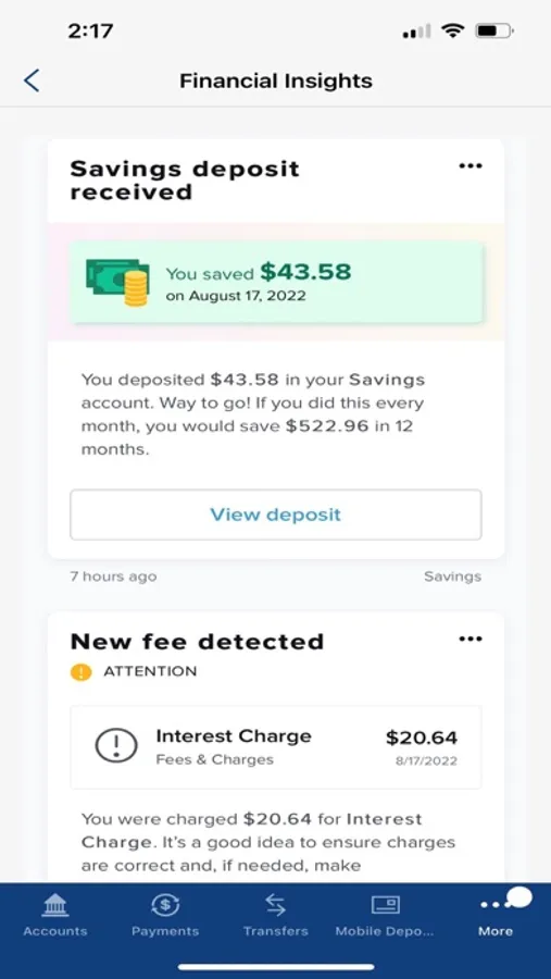 Financial insights: Stay on top of your financial wellness with personalized notifications that deliver real-time information.