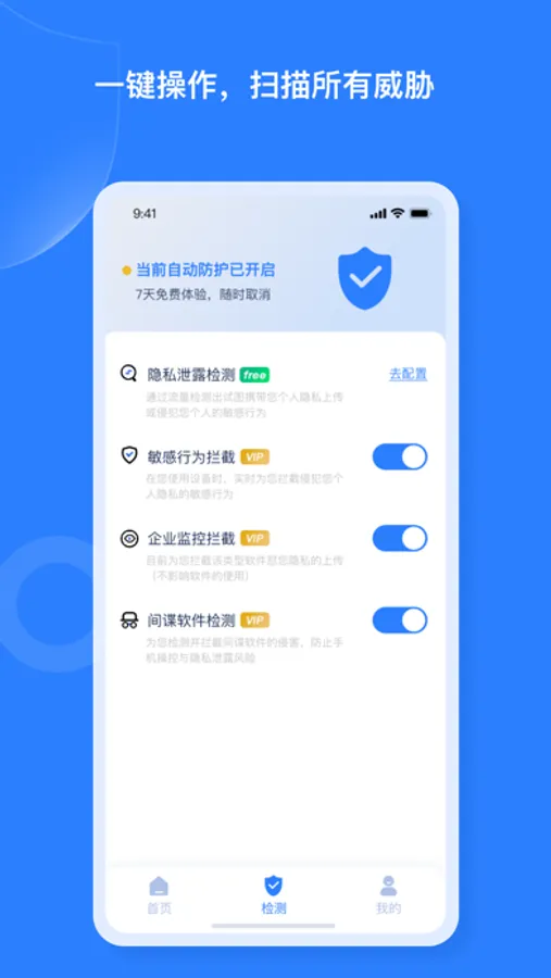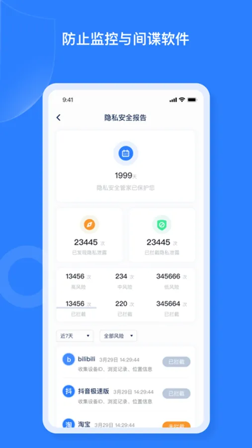 我们将识别并拦截是否有后台产品正在窃听您的手机隐私,防止滥用个人数据用于广告骚扰与数据泄漏。