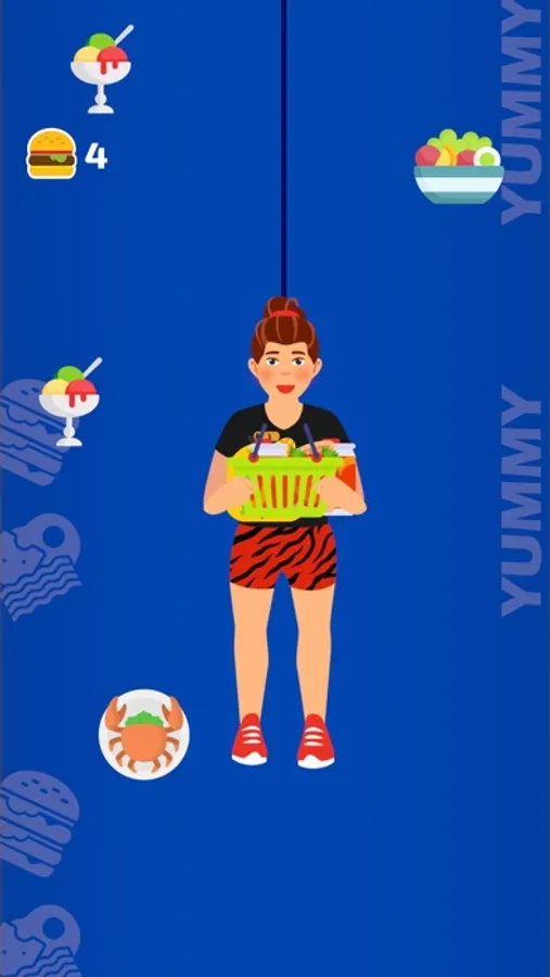 - Simple and addictive gameplay: Just Hold and Drag to catch food dishes!