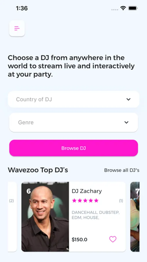 Wavezoo is the first online marketplace where you can choose and hire a DJ to play live and interactively