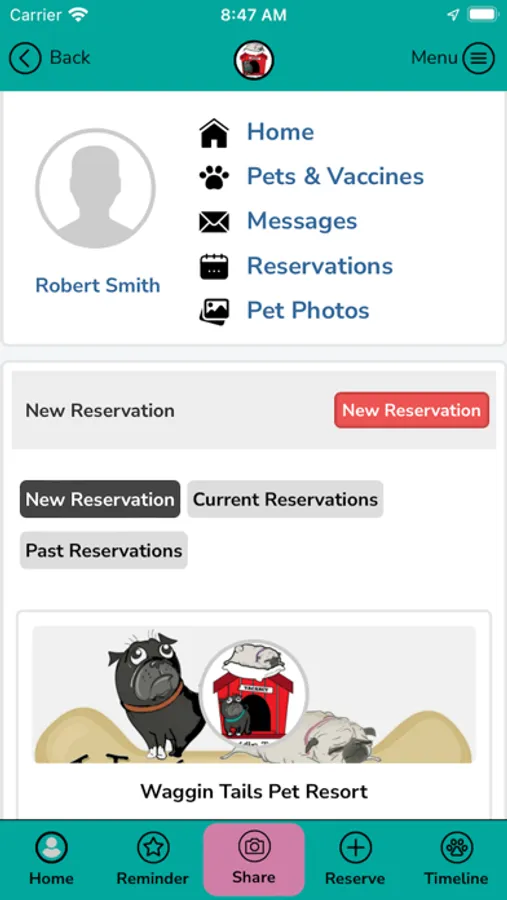 The Waggin Tails Pet Resort App enables users to make reservations, purchase package credits, see and pay invoices, message with Waggin Tails Pet Resort, see photos of their pets, and more. Employees of Waggin Tails Pet Resort are able to manage the business and connect with customers. This app is made specifically for the customers and employees of Waggin Tails Pet Resort.