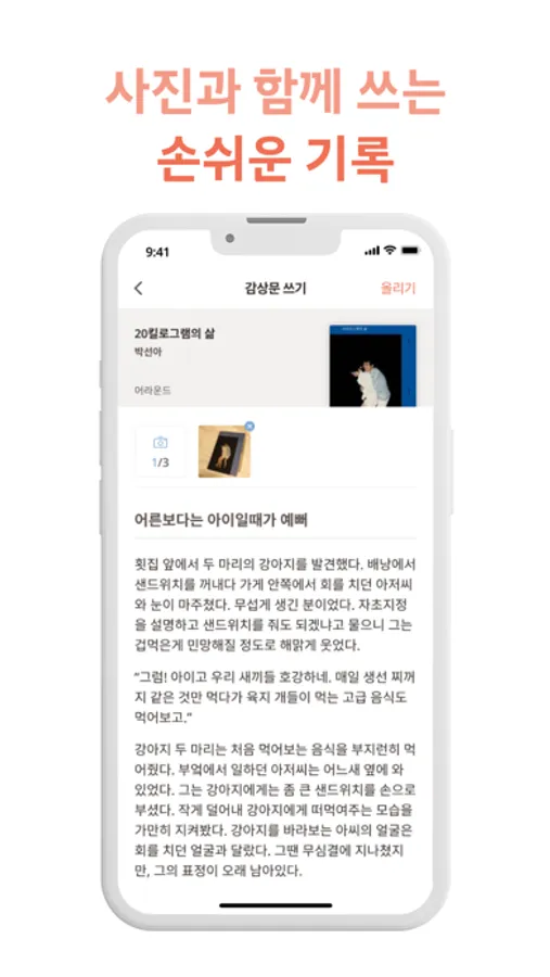2. 나만의 감상문을 사진과 함께 ‘읽자’에 자유롭게 남기면