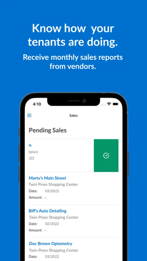 - Track Tenant sales submissions through robust sales module with easy- to-use Landlord approval process.