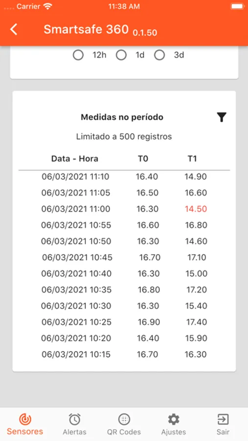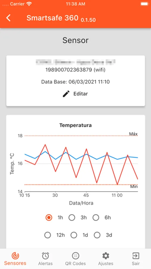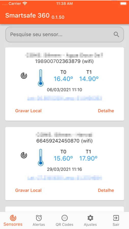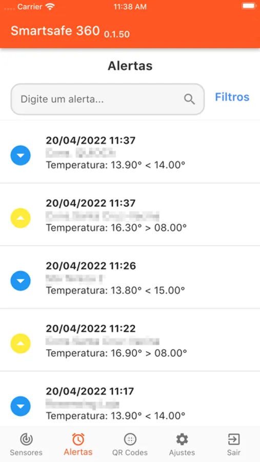 Aplicativo de acesso a dados de sensores, alertas e registros de eventos do sistema Smartsafe 360.