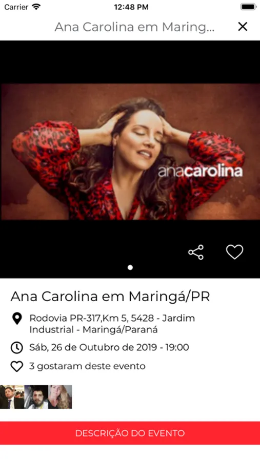 Você também pode compartilhar qualquer evento com seus amigos nas redes sociais diretamente do Lupper.