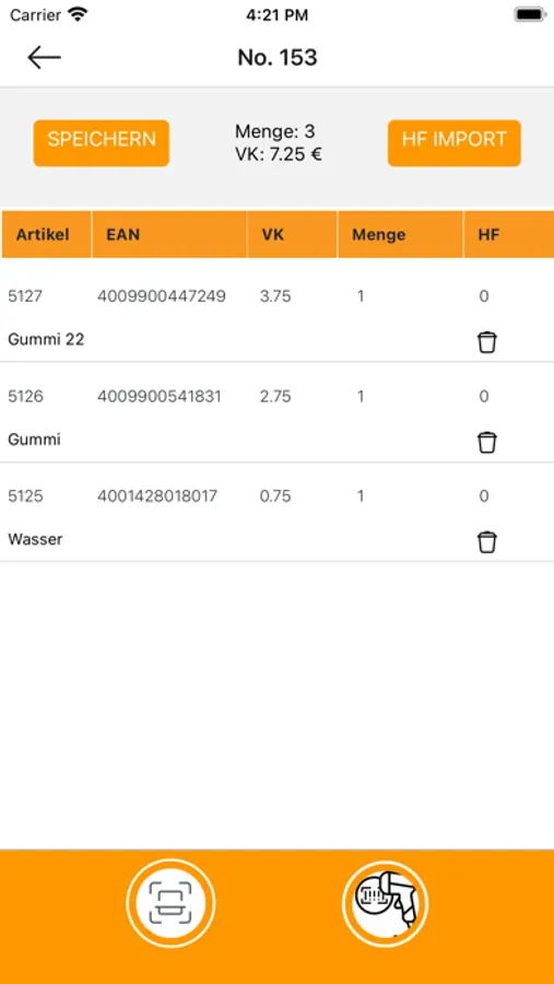 Sie können die Waren sowohl mit der Kamera Ihres Geräts als auch mit einem manuellen Bluetooth-Scanner lesen, den Sie nur mit dem Gerät verbinden müssen.