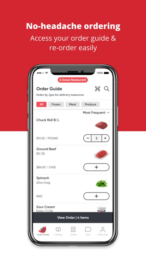 Our mobile app lets you search our complete product catalog, manage and update your ordering guide, and buy what you need at the moment you need it. It’s part of our commitment to giving you an ordering experience you’ll love.