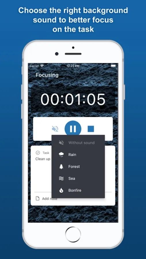 - The app allows you to focus on completing a specific task from your list with the option to choose a melody that helps you concentrate better on the task.