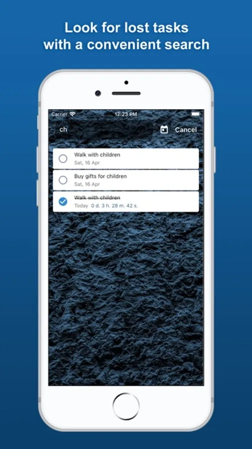 - Convenient search function in the app allows you to find any lost tasks. There is search by text and by task date.