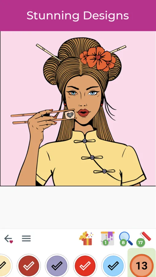 Color by Number Pro is designed to relax your mind and provide stress relief. You will never get bored with this game! Let your imagination run wild with a huge variety of colors, drawings and paintings to choose from.
