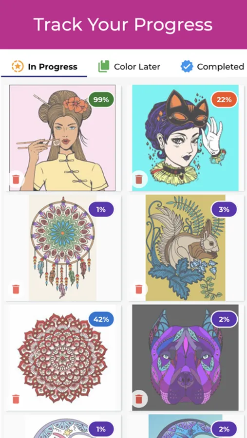 You can always return to your unfinished coloring page and start from exactly where you left off.