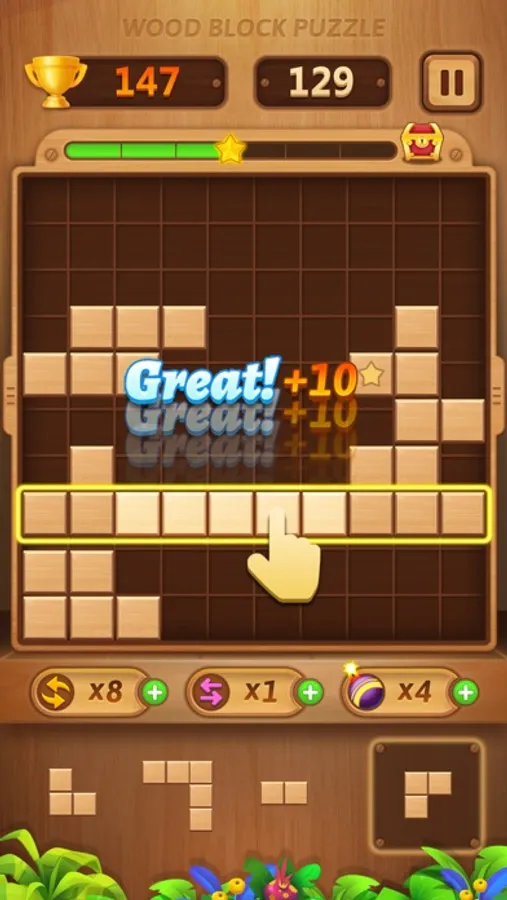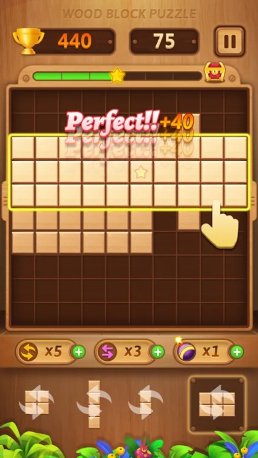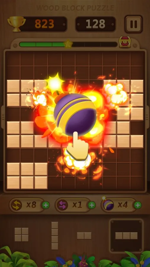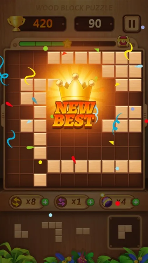 The goal of Wood Block Puzzle is to drop blocks in order to create and destroy full lines on the screen both vertically and horizontally. Don't forget to keep the blocks from filling the screen in this addictive puzzle game.
