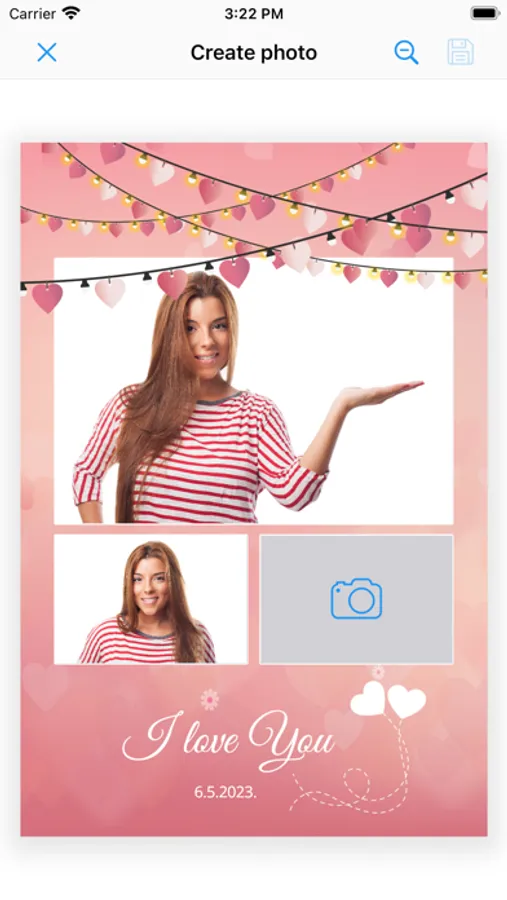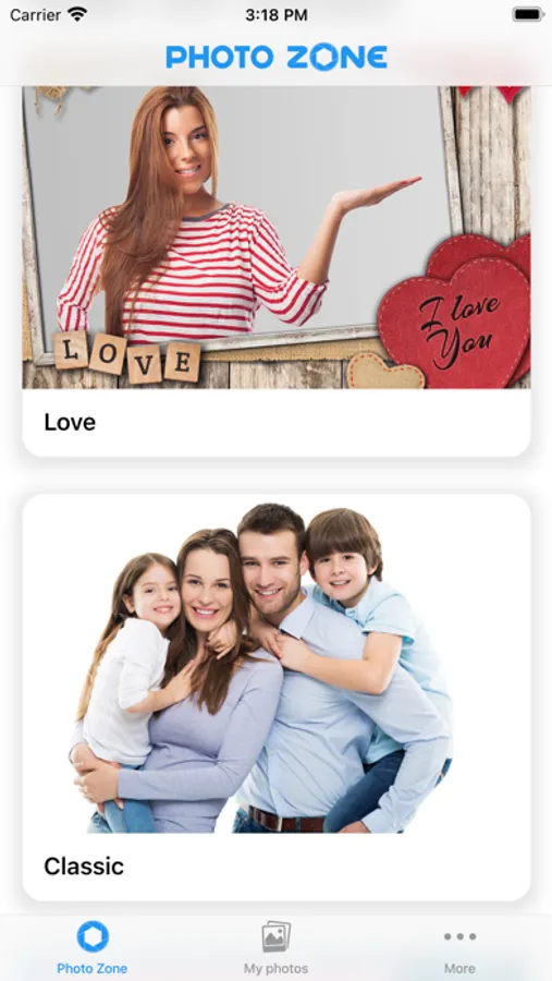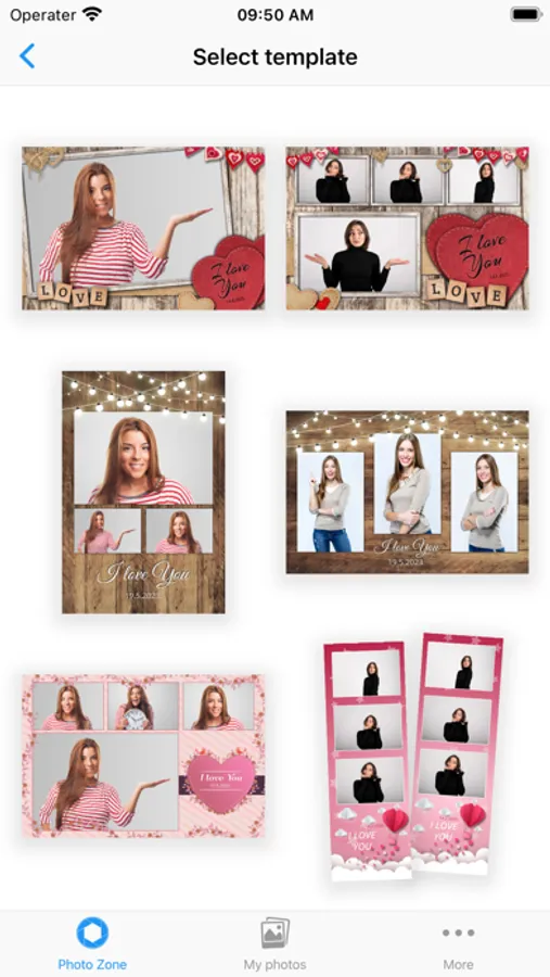 The app supports printing photos using fun themed photo templates.