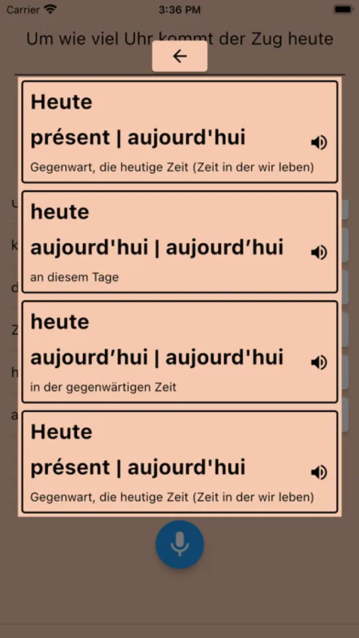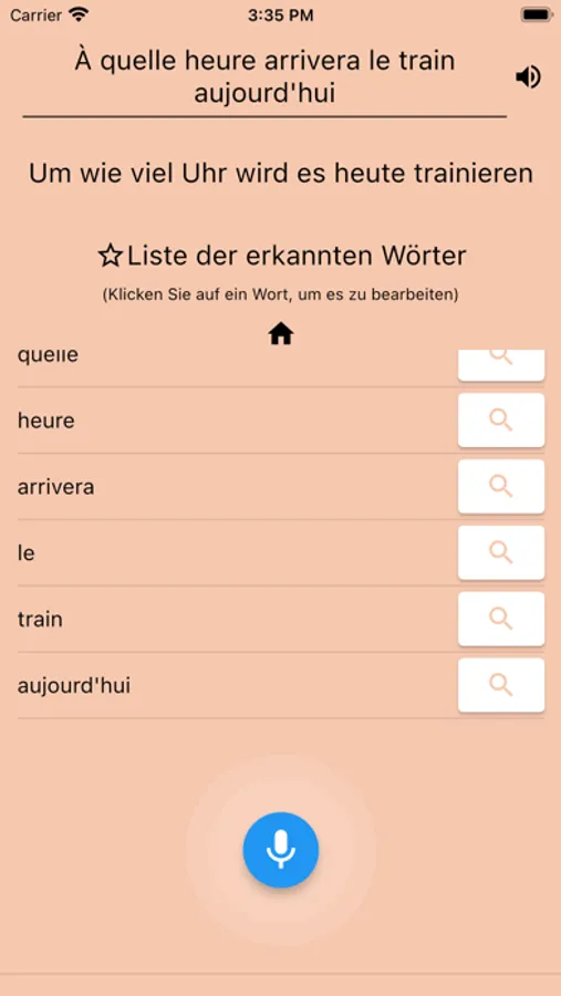 Um die Suche nach französischen Bedeutungen einfacher und schneller zu machen, sprechen Sie einfach in das Gerät.