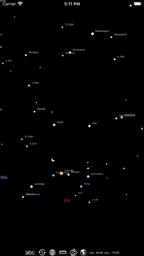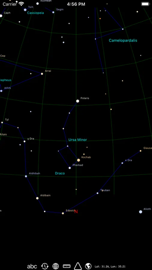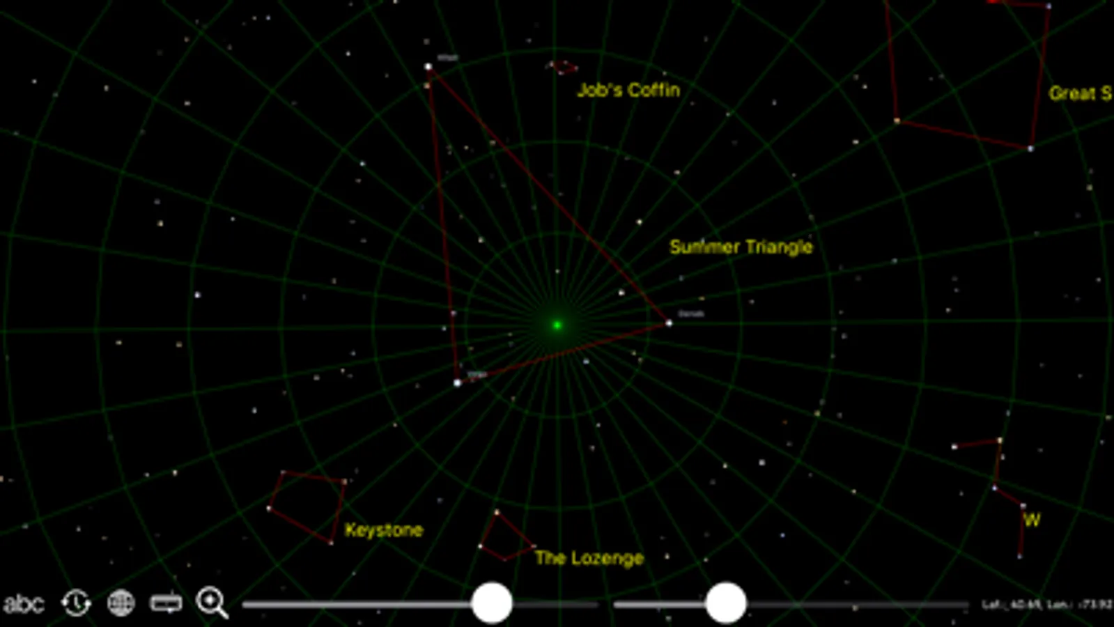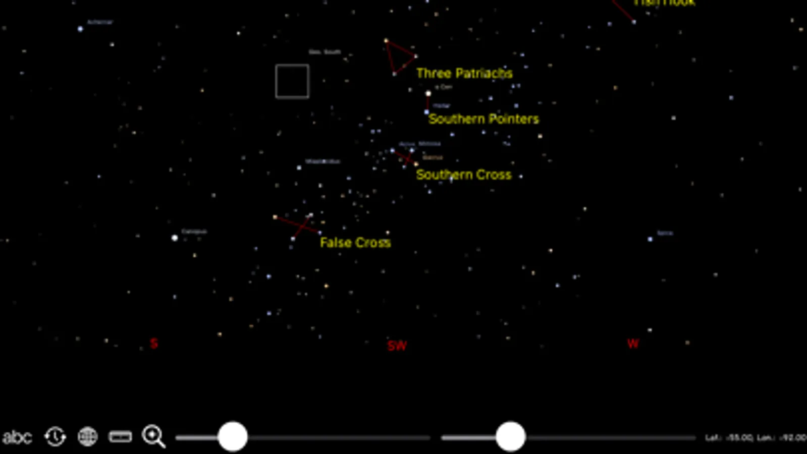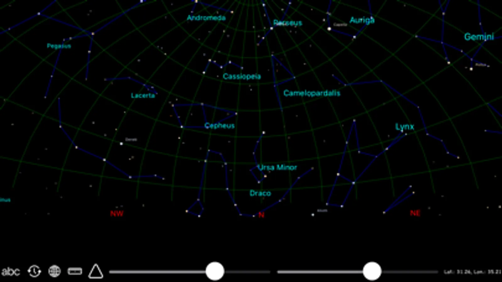 *Latitude and Longitude sliders allow you to adjust your current location and see how the night sky rotate/scroll. You could compare the virtual night sky and the night sky you see above to get your rough longitude after you have calculated your latitude from the feature above. If you could see stars rising above the horizon, it's easier to get your longitude by comparing the stars right above the horizon.