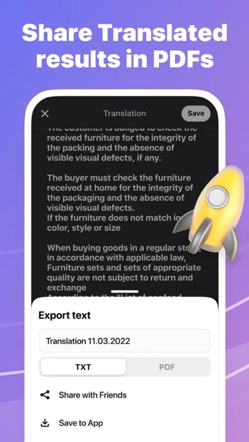A must-have for travelers, language learners, and international companies’ employees. Communicate freely in any part of the world without stress and misunderstanding. Just move your camera to some object or document, and get instant translation. The latest AI technologies help to translate with unrivaled accuracy.