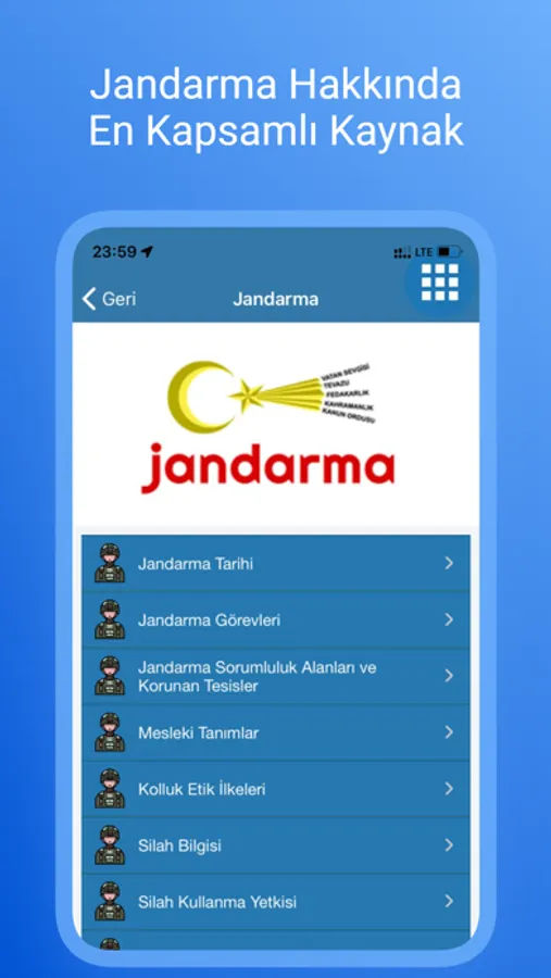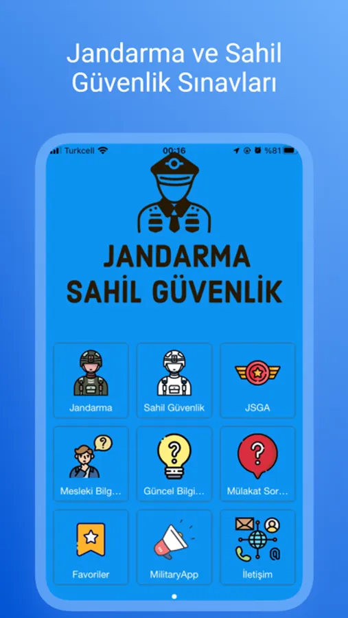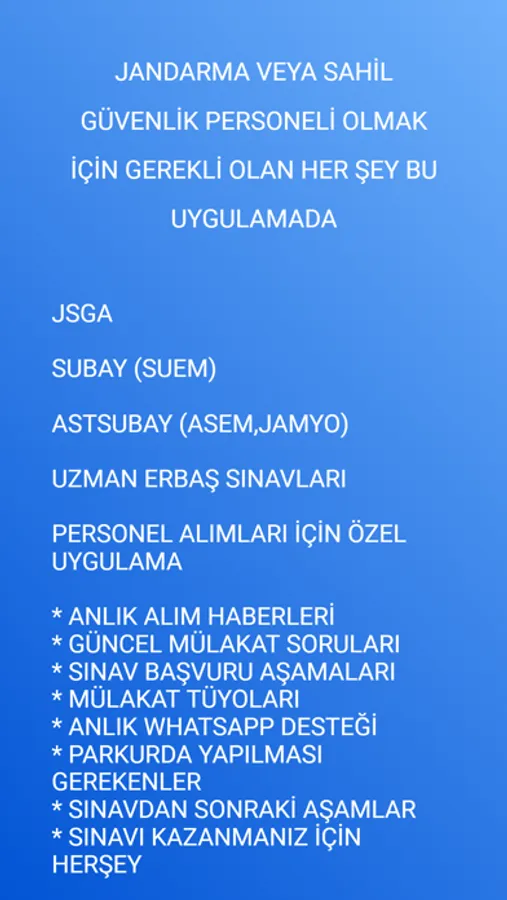 Jandarma veya Sahil Güvenlik Personeli olmak isteyen herkesin kullanabileceği güncel mobil uygulama;