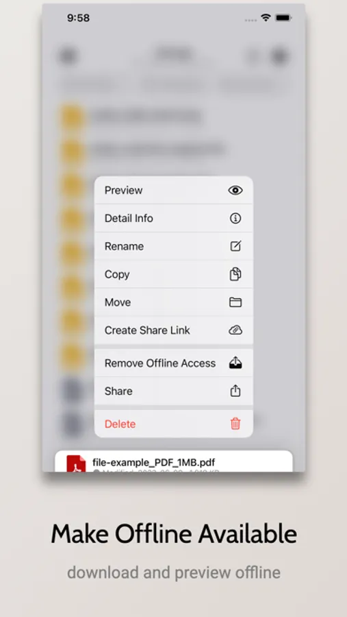 - Manage your file like operation in local disk, you can move/copy/delete/rename your file/ or folder