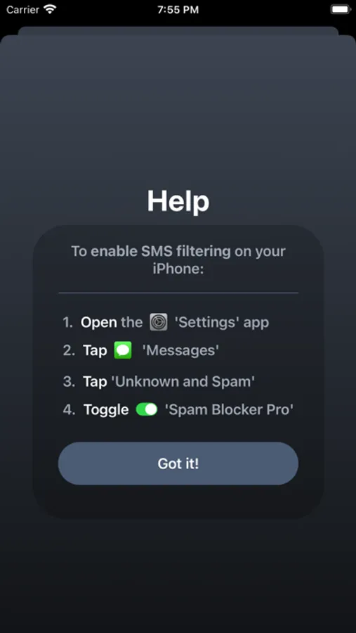 Spam Blocker Pro help you filter and block unwanted sms from known or unknown numbers.