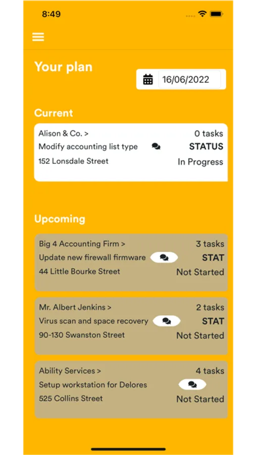 With the power of geo-location, the app takes the jobs assigned to you for the day, lists them out with your tasks and automatically tracks your time. This data can then be passed (via integration) into your billing software to pre-populate or even automate your billing.