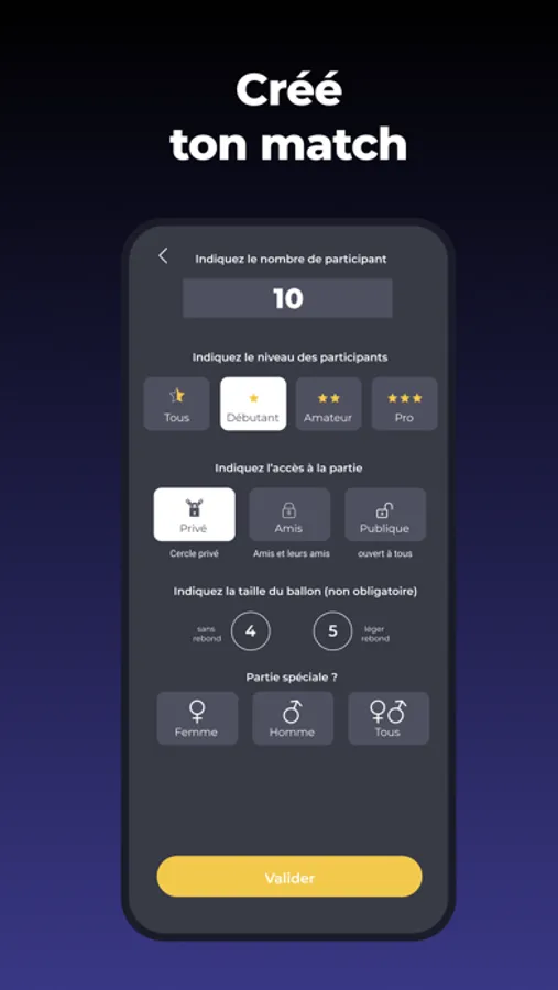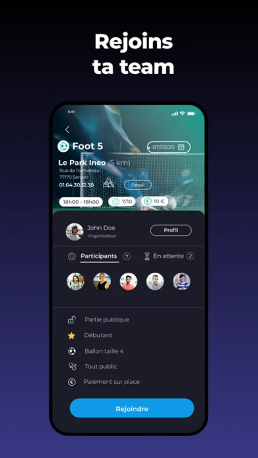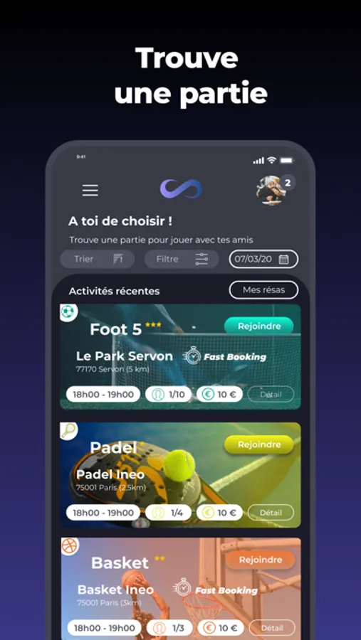 Réserve ta partie, rejoins des matchs ou encore trouve des joueurs pour compléter tes parties en quelques clics.